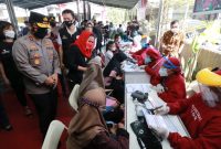 Kapolda Jawa Timur Irjen Pol Nico Afinta, bersama Pejabat Utama Polda Jatim, Sabtu (28/8/2021) melakukan pengecekan serbuan vaksinasi Merdeka, yang berlangsung di Wage Sidoarjo…