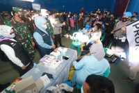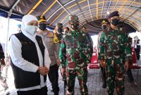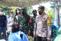 Forkopimda Jawa Timur mengecek pelaksanaan serbuan vaksinasi di Gedung Tenis Indoor, Jalan Kusuma Bangsa, Jombang. Sebanyak 2900 warga Jombang telah dilakukan vaksinasi hari ini,…